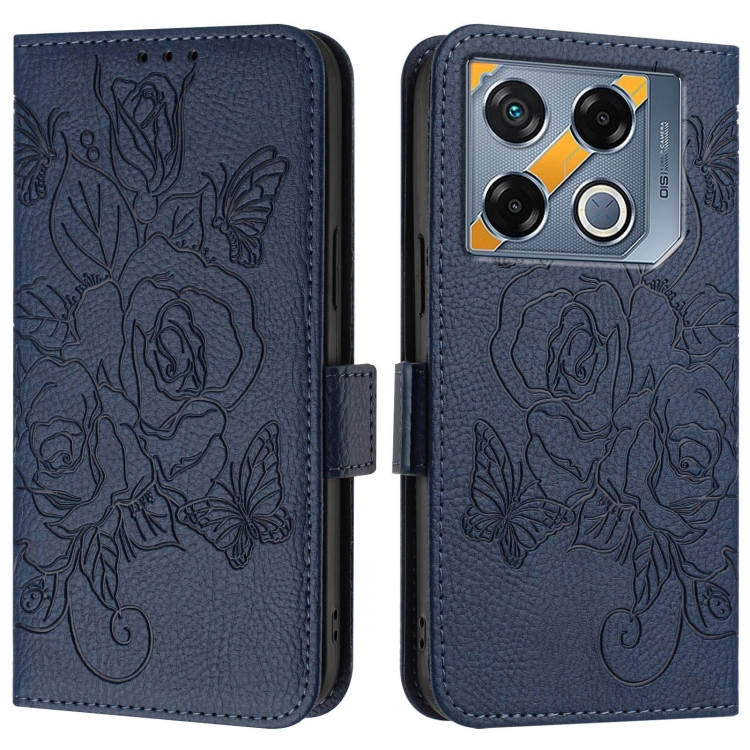 Funda de Cuero Antirrobo RFID para Infinix GT 20 Pro con Relieve (Azul Oscuro)