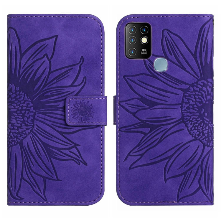 Funda Flip de Cuero Infinix Hot 10 Skin Feel con Cordón y Patrón Sun Flower (Púrpura Oscuro)