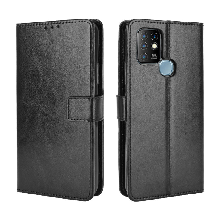 Funda Cuero Retro Crazy Horse para Infinix Hot 10 X682 con Soporte, Ranuras y Cordón (Negro)