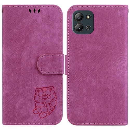 Funda para Teléfono Infinix Hot 11 2022 de Cuero con Relieve Little Tiger (Rojo Rosa)