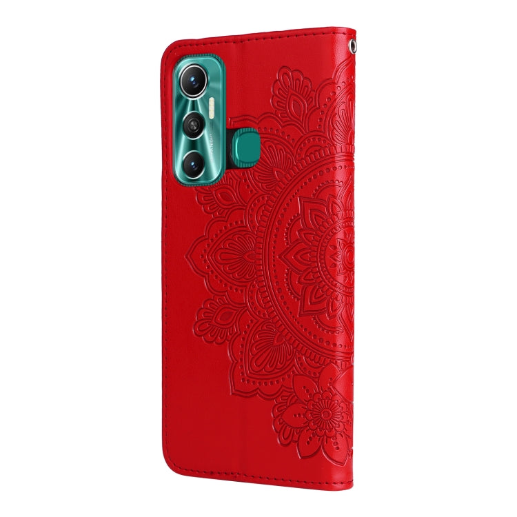 Funda de Cuero Flip Horizontal para Infinix Hot 11 con Patrón 7-Petal Flowers (Rojo)