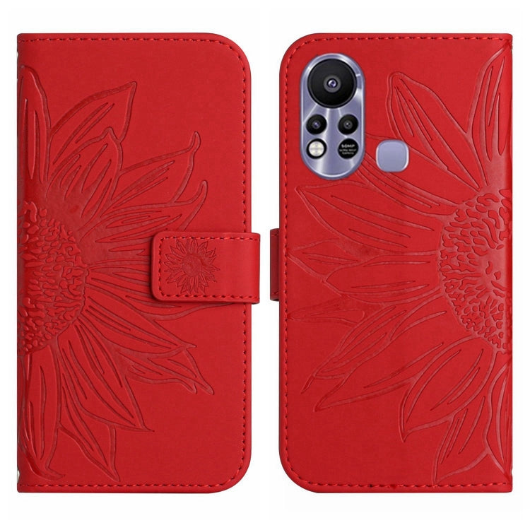 Funda de Cuero Flip para Infinix Hot 11S con Cordón y Diseño Sun Flower (Rojo)