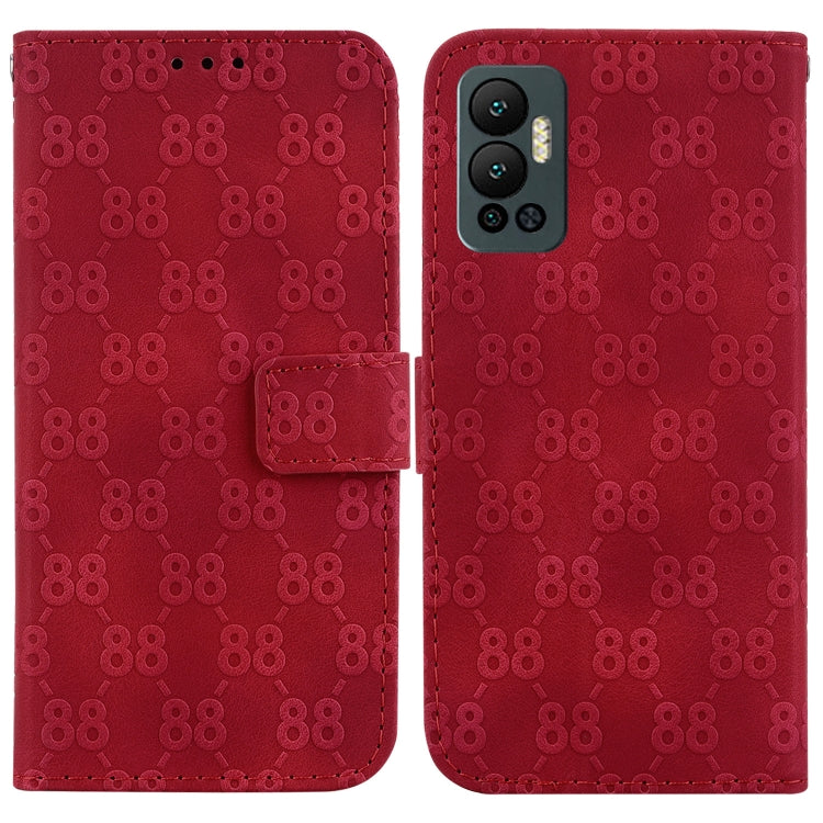 Estuche para Infinix Hot 12 de Cuero en Relieve con Doble Forma de 8 (Rojo)
