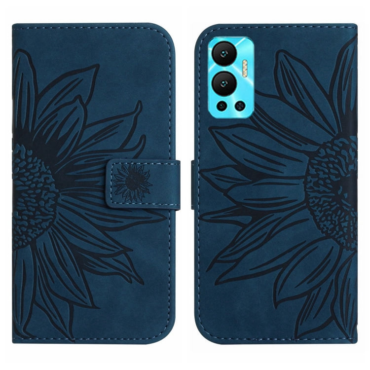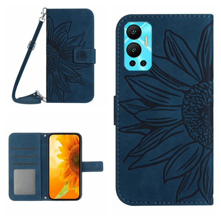 Funda Flip de Cuero para Infinix Hot 12 con Cordón y Diseño Sun Flower (Azul Tinta)