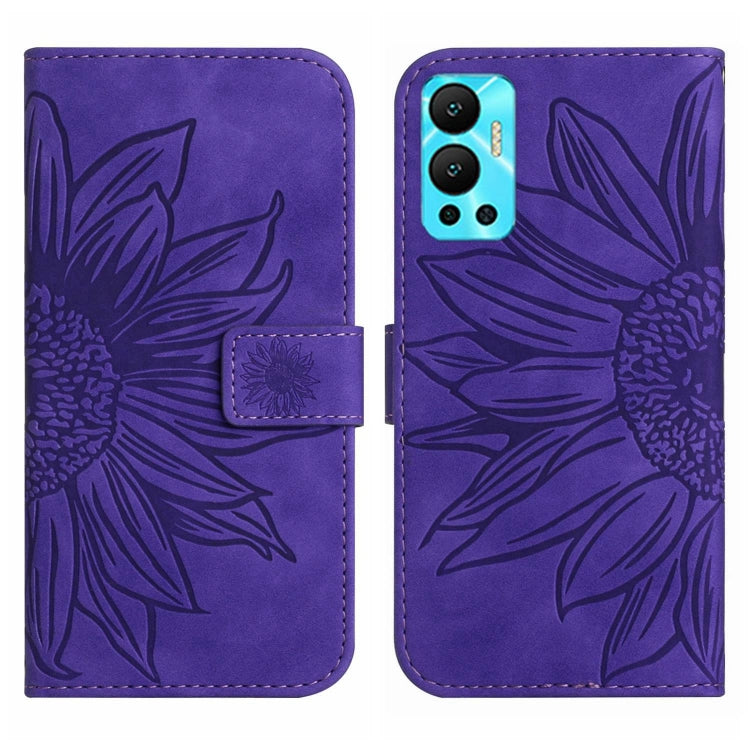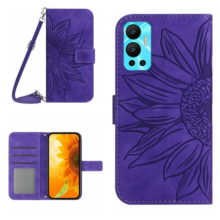 Funda Flip de Cuero para Infinix Hot 12 con Cordón y Diseño Sun Flower (Morado Oscuro)