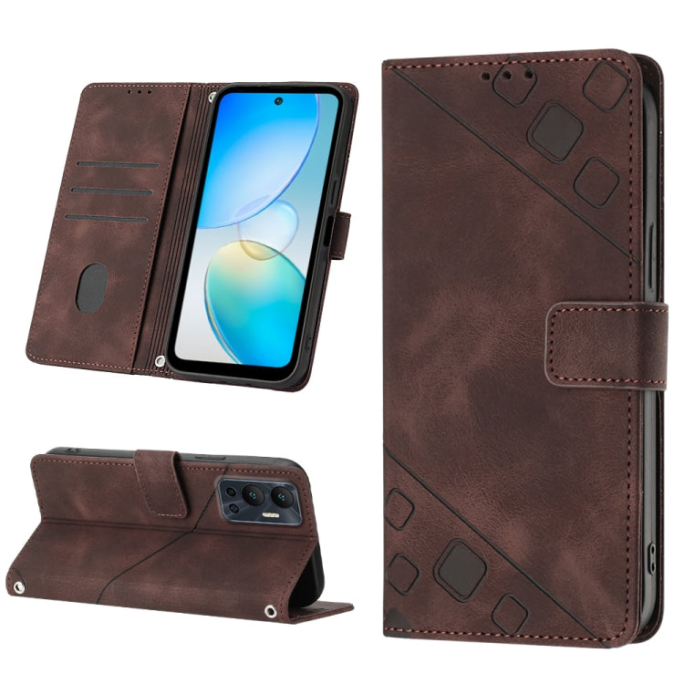 Estuche para Infinix Hot 12 X6817 de Cuero en Relieve con Tacto de Piel (Marrón)