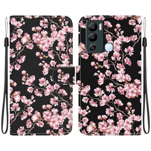 Estuche para Teléfono Infinix Hot 12I Cuero con Dibujo Coloreado y Textura de Cristal (Flor de Ciruelo)