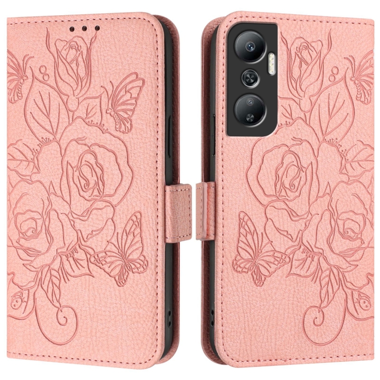 Funda de Cuero Antirrobo RFID para Infinix Hot 20 4G con Relieve (Rosa)