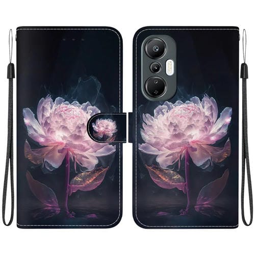 Funda de Cuero para Infinix Hot 20S con Dibujo Coloreado y Textura de Cristal (Peonía Púrpura)