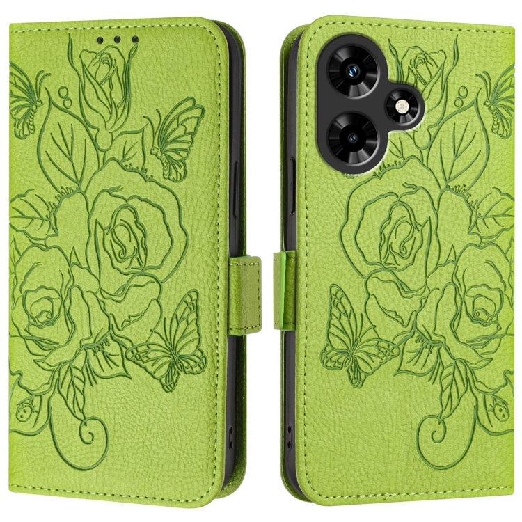 Funda de Cuero Antirrobo RFID para Infinix Hot 30 4G con Relieve Rosa (Verde)