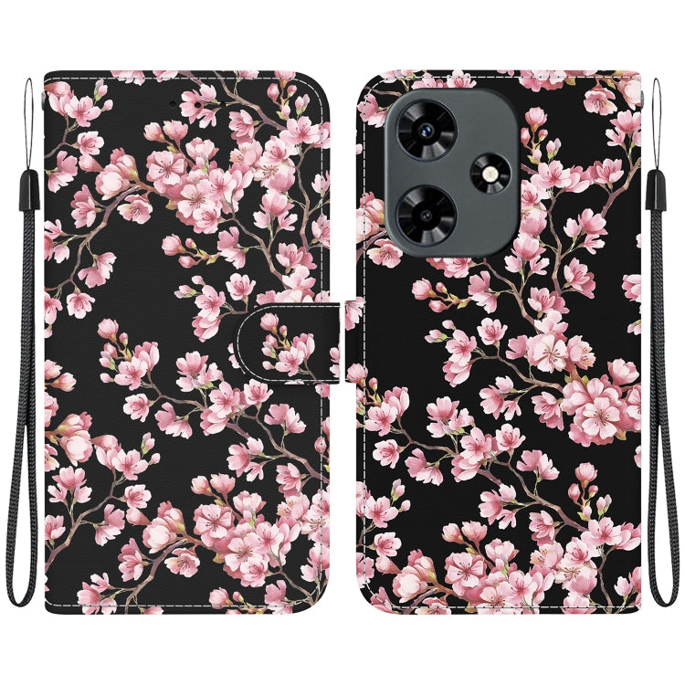 Estuche de Cuero para Infinix Hot 30 con Dibujo Coloreado y Textura de Cristal (Flor de Ciruelo)
