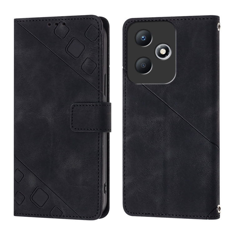 Funda de Cuero En Relieve para Infinix Hot 30 Play y Hot 30 Play Nfc (Negro)