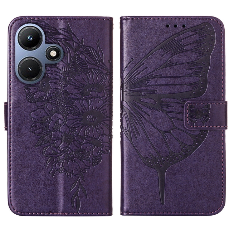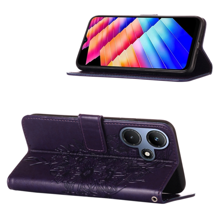 Estuche para Teléfono Infinix Hot 30I X669 de Cuero con Mariposa en Relieve (Púrpura Oscuro)
