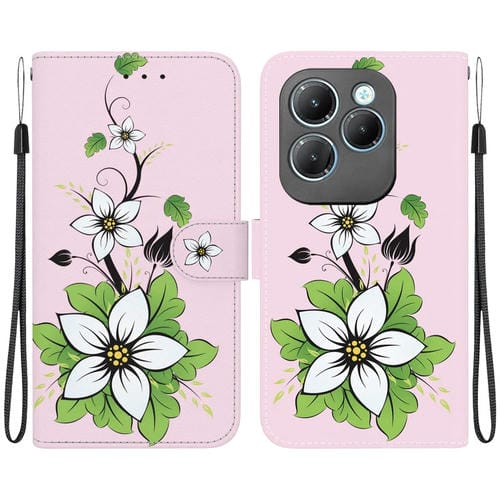 Funda de Cuero para Infinix Hot 40/40 Pro con Dibujo Coloreado y Textura de Cristal (Lirio)
