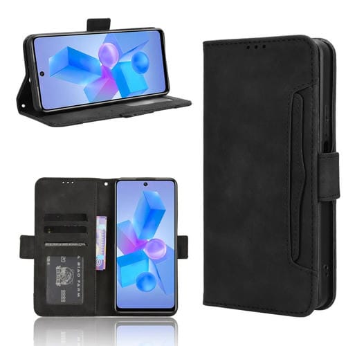 Funda de Cuero para Infinix Hot 40 4G con Ranuras para Tarjetas y Textura Becerro (Negro)