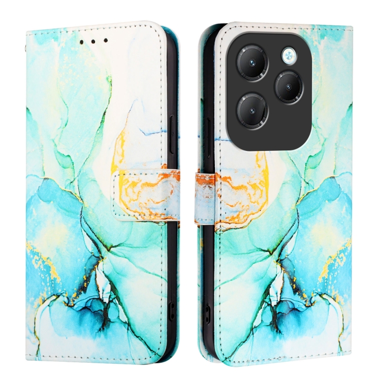 Funda de Cuero con Tapa para Infinix Hot 40 y Hot 40 Pro Pt003 con Patrón Mármol (Verde)