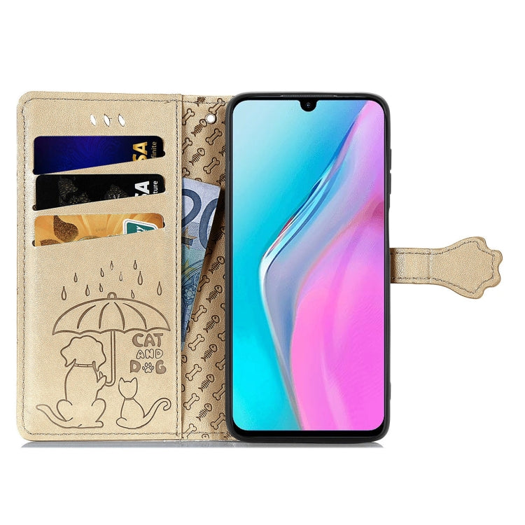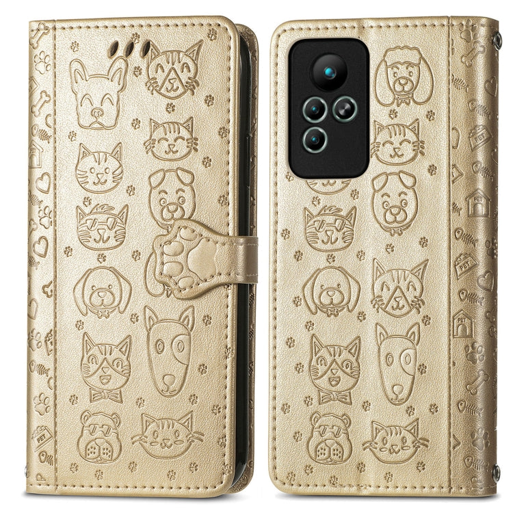 Estuche de Cuero En Relieve para Infinix Note 11 Cute Cat And Dog (Dorado)