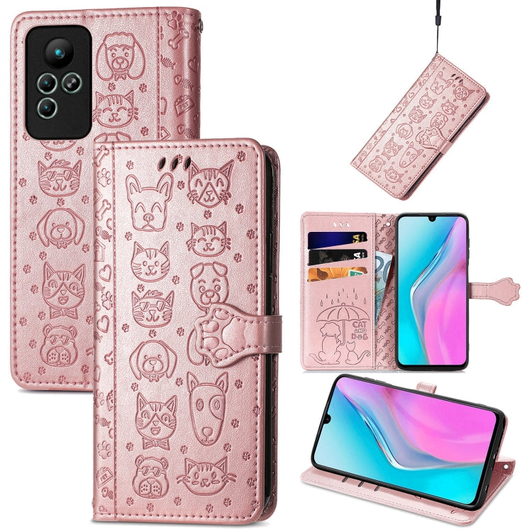 Estuche de Cuero En Relieve para Infinix Note 11 Cute Cat And Dog (Oro Rosa)