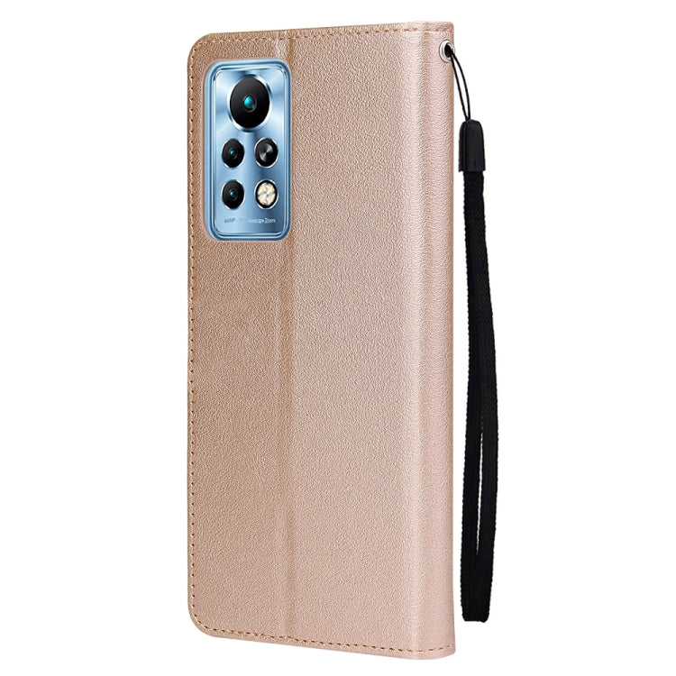 Estuche de Cuero para Infinix Note 11 Pro con Tapa Horizontal Multifuncional y Tres Ranuras (Oro)