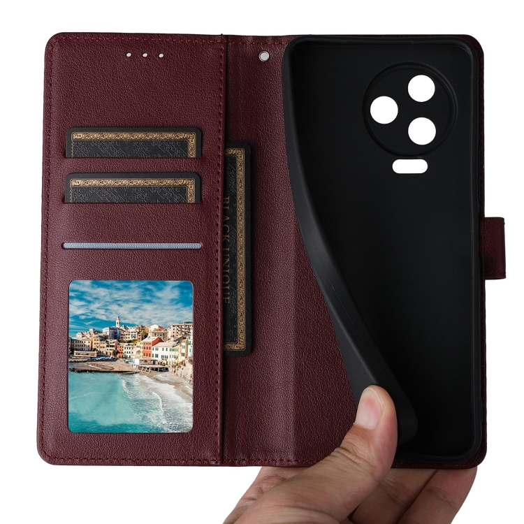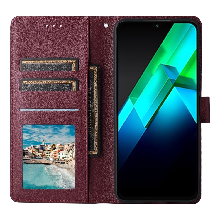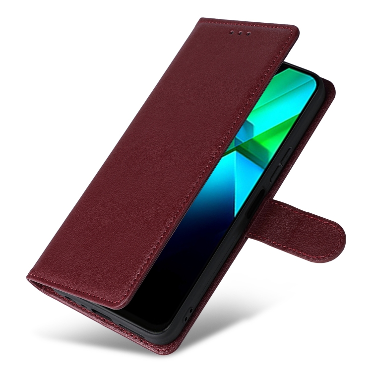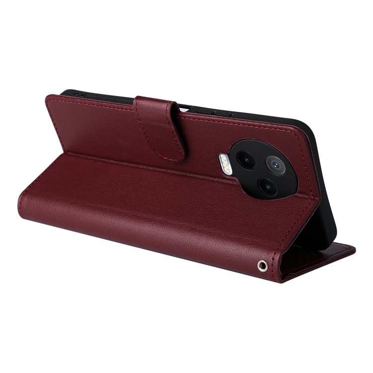 Funda para Infinix Note 12 (2023) de Cuero con Tapa Horizontal y 3 Ranuras para Tarjetas (Rojo Vino)