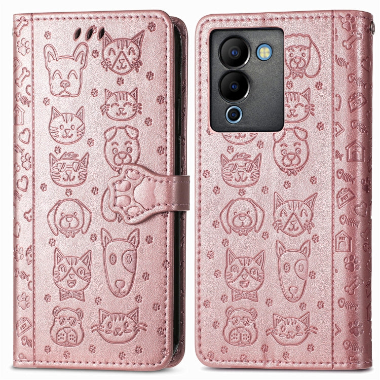 Funda de Cuero para Infinix Note 12 G96 con Relieve de Gato y Perro (Oro Rosa)