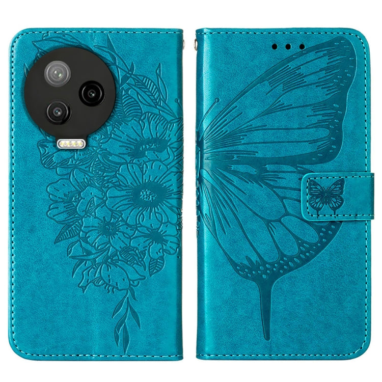 Estuche de Cuero para Infinix Note 12 Pro 4G con Tapa de Mariposa En Relieve (Azul)