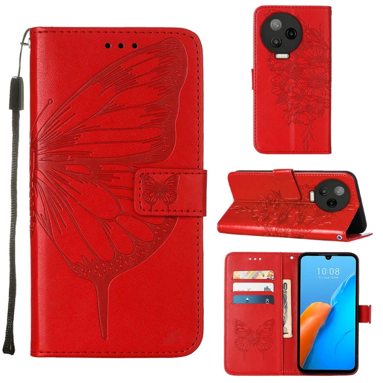 Estuche de Cuero para Infinix Note 12 Pro 4G con Tapa de Mariposa en Relieve (Rojo)