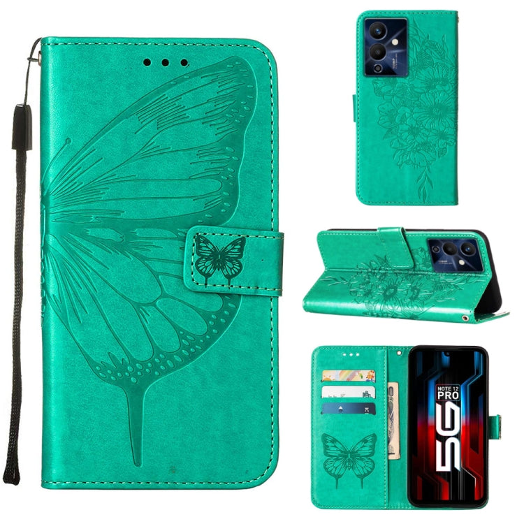 Estuche para Infinix Note 12 Pro 5G de Cuero con Tapa de Mariposa en Relieve (Verde)