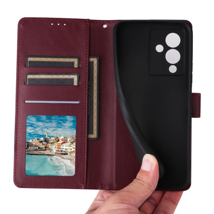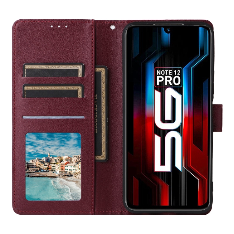 Funda para Infinix Note 12 Pro 5G de Cuero con Tapa Horizontal y Tres Ranuras para Tarjetas (Rojo Vino)