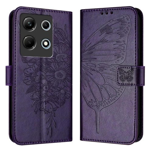 Funda de Cuero para Infinix Note 30 4G con Mariposa en Relieve (Púrpura Oscuro)