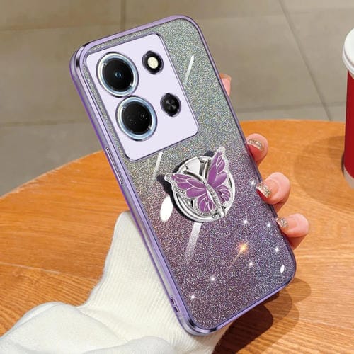 Estuche TPU para Infinix Note 30 5G con Soporte de Mariposa y Brillo Degradado (Púrpura)