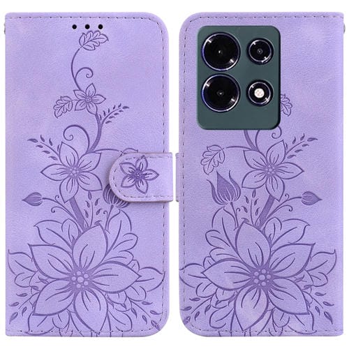 Funda de Cuero con Relieve Lily para Infinix Note 30 (Púrpura)