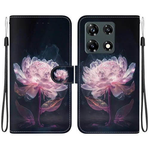 Funda de Cuero para Infinix Note 30 Pro con Dibujo Coloreado y Textura de Cristal (Peonía Púrpura)