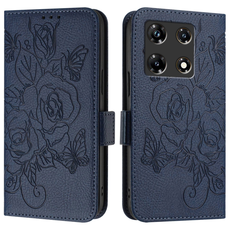 Funda de Cuero Antirrobo RFID para Infinix Note 30 Pro y Note 30 5G con Relieve Rosa (Azul Oscuro)