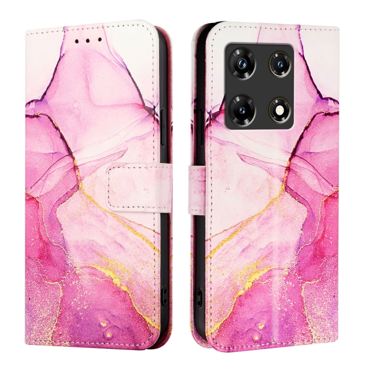 Funda para Infinix Note 30 Pro y Note 30 5G Pt003 Cuero con Tapa y Patrón Mármol (Rosa, Morado y Dorado)