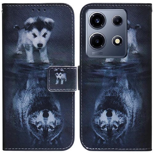 Funda de Cuero con Tapa para Infinix Note 30 Vip con Dibujo Coloreado (Lobo y Perro)