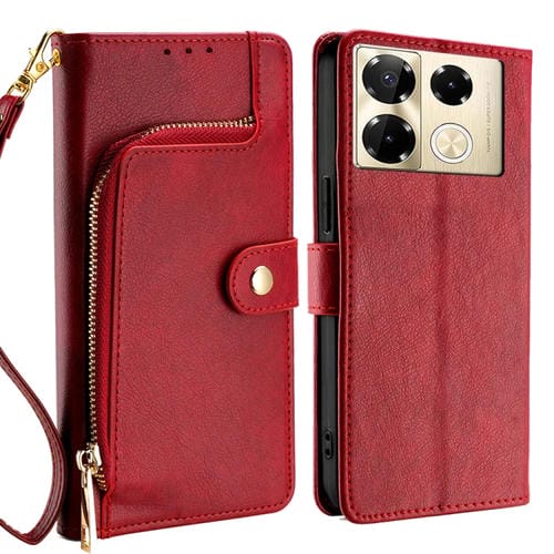 Funda de Cuero para Infinix Note 40 Pro 4G con Bolsa y Cremallera (Rojo)