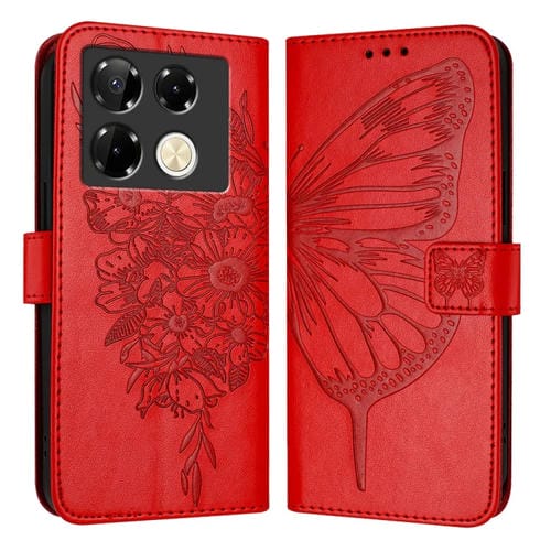 Funda de Cuero para Infinix Note 40 Pro 4G con Mariposa en Relieve (Rojo)