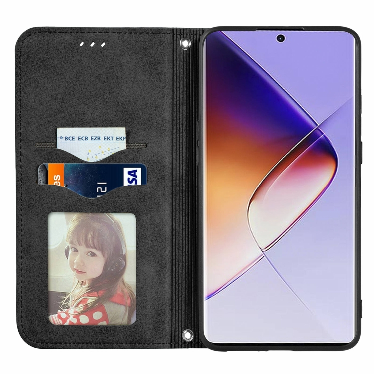 Funda de Cuero para Infinix Note 40 Pro 4G con Tapa Magnética y Sensación de Piel Retro (Negro)