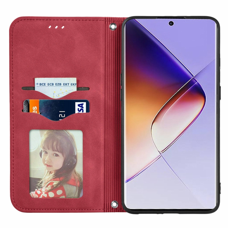 Funda de Cuero para Infinix Note 40 Pro 4G con Tapa Magnética y Piel Retro (Rojo)