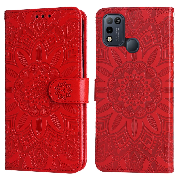 Estuche para Teléfono Infinix Smart 5 Cuero con Estampado de Girasol en Relieve (Rojo)