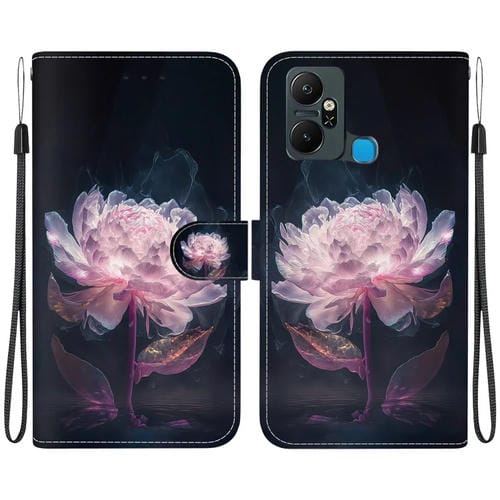 Funda de Cuero para Infinix Smart 6 Plus con Dibujo Coloreado y Textura de Cristal (Peonía Púrpura)