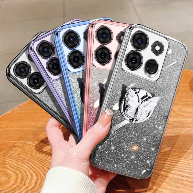 Funda TPU para Infinix Smart 7 con Soporte de Mariposa y Brillo Degradado (Rosa)