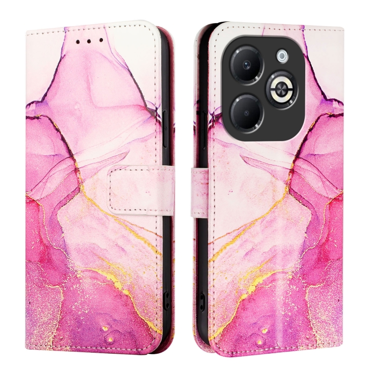 Funda de Cuero con Tapa para Infinix Smart 8 Plus / 8 Pro Pt003 con Patrón Mármol (Rosa, Morado y Dorado)