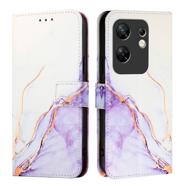 Funda de Cuero para Infinix Zero 30 4G Pt003 con Tapa y Patrón Mármol (Blanco y Morado)