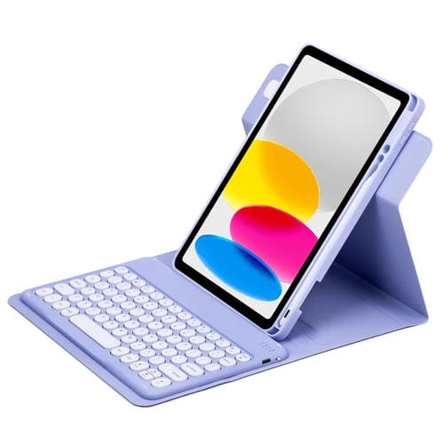 Funda de Cuero con Teclado Bluetooth para iPad 10Th Gen 10.9 2022 Botón Redondo Giratorio 360 (Púrpura Claro)
