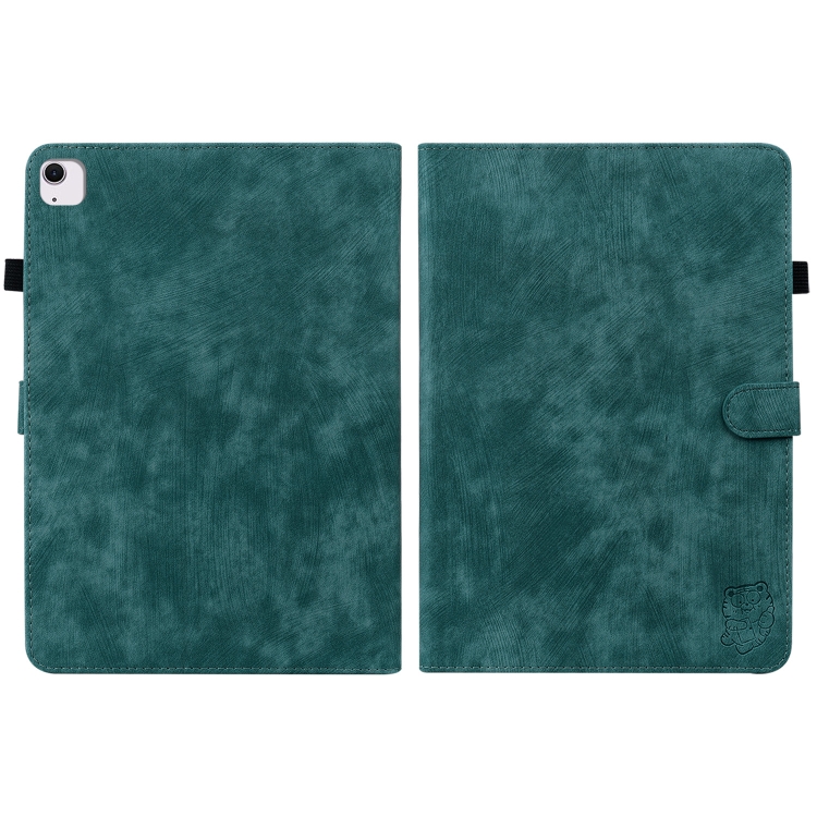 Funda de Piel para iPad Air 13 (2025/2024) Estampado Tigre en Relieve (Verde Oscuro)
