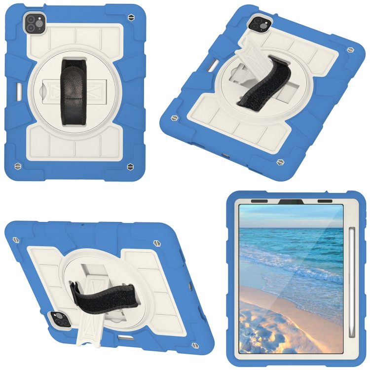 Funda híbrida de silicona para iPad Air 10.9 2020/2022 a prueba de golpes con correa (Azul Celeste)