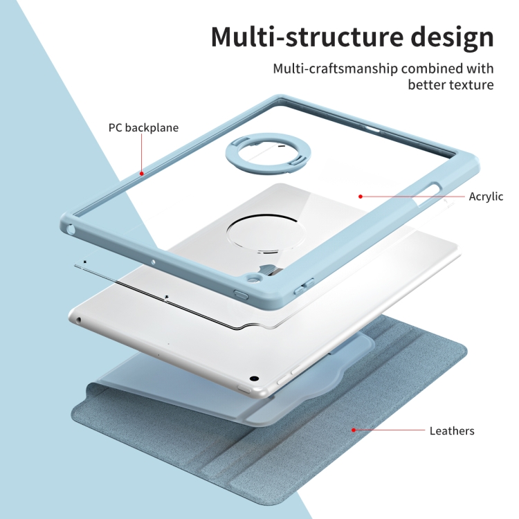 Funda para iPad Pro 10.2 2021 2020 2019 Acrílico 360 Rotación Cuero Desmontable (Azul Hielo)