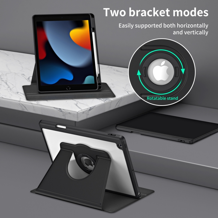 Funda para Tableta iPad Pro 10.2 2021/2020/2019 Cuero Desmontable Rotación 360 (Negro)